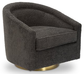 Upholstered in gray fabric this swivel chair will make an eye catching piece in your home.
